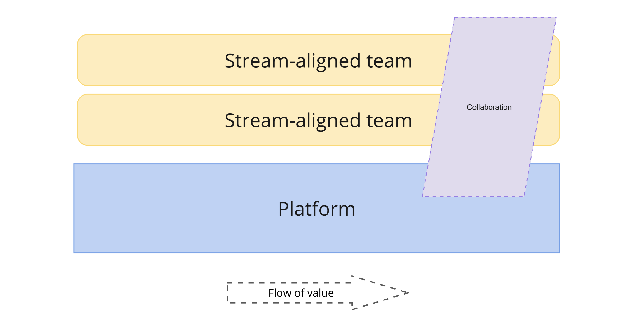 You can’t resolve systemic coordination issues through willpower or goodwill. You need to revisit the structure, clarifying who owns what, what needs to be decided jointly, and what doesn’t, and where the number of interaction points can be reduced through better team design. Team Topologies offers useful language here by framing what we mean by Collaboration, Facilitating, and X-as-a-service interactions. Collaboration and facilitation should be short-lived and purposeful, with a clear intent to achieve the desired outcome, often resulting in an X-as-a-service interaction. X-as-a-service should be a longer-lived interaction that enables self-service from consuming teams without needing handovers. However, these should be monitored over time to ensure they are still relevant. We don't want every relationship to be collaborative all the time: collaboration is expensive after all.